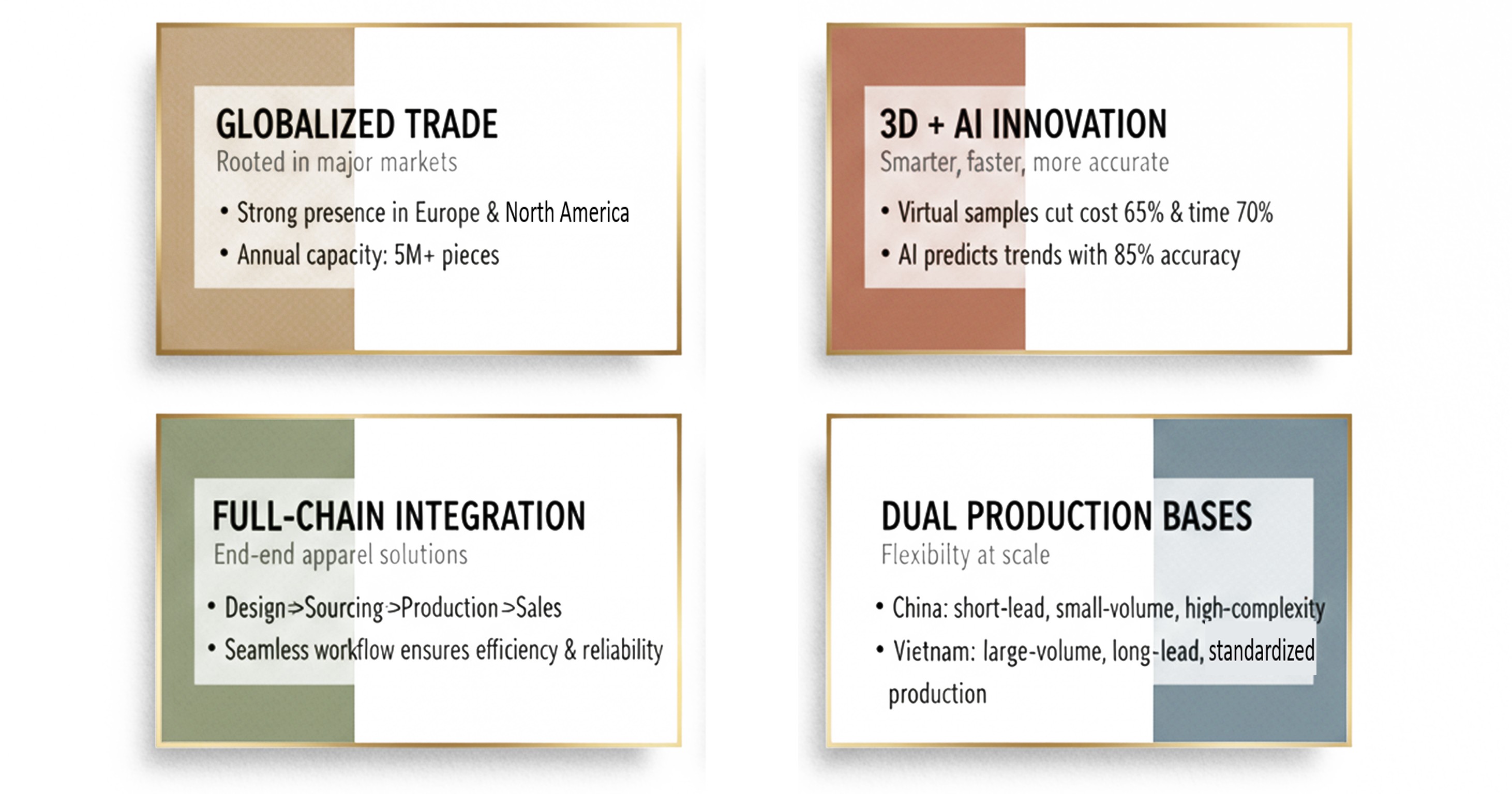 We are a global apparel partner, seamlessly uniting fabric sourcing,